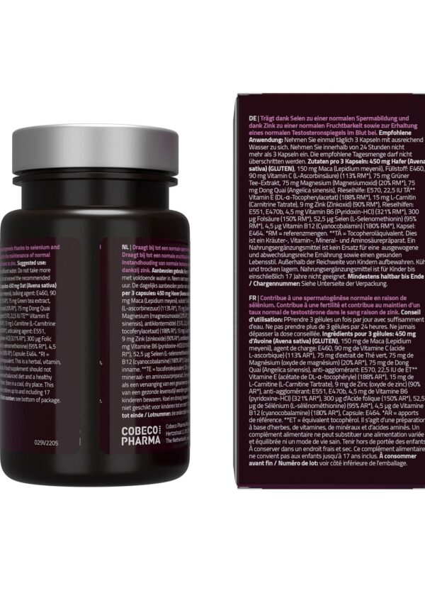 The sperm quality capsules can help improve sperm quality and production, thanks to the ingredients Zinc and Selenium. These capsules with natural ingredients support fertility, organs and overall physical well-being of men. With the sperm quality capsules, you can help maintain the quality of your sperm.